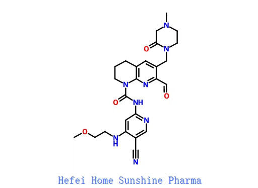 N- ((5-سيانو-4-(((2-ميتوكسي إيثيل) أمينو) بيريدين-2-يل) -7-فورمل-6-((4-ميثيل-2-أوكسوبيبيرازين-1-يل) ميثيل) -3،4-ديهيدرو-1،8-نافثيريدين-1 ((2H) كاربوكساميد؛