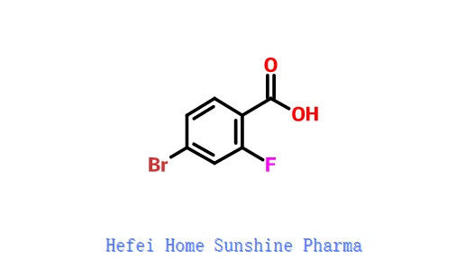4- برومو - 2 - حمض الفلوروبينزويك هو منتصف عضوي ، والذي يمكن تحضيره من 2- فلورو - 4 - بروموتولوين كمادة خام عن طريق تفاعل الأكسدة.تم الإبلاغ عن أنه يمكن استخدامه في تحضير منتجات وسطية من إنزالوتامين و منتجات وسطية رئيسية من فينيتوتيكحمض 4-برو-مو-2-فلوروبنزويك هو مشتق هالوجيني من حمض البنزويك.يستخدم حمض 4- برو - مو - 2- فلوروبنزويك في تكوين منتجات ذات أهمية دوائية مثل مثبطات أكسدة حمض d- Amino.