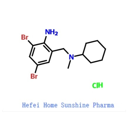 2-amino-n-cyclohexyl-3,5-dibromo-n-methyl-benzylaminhydrochloride هو نوع جديد من مقشع قابل للذوبان في المخاط، والذي يتم تركيبه وفقًا لهيكل المكون النشط (phyllinine) المقترح في نبات الطب زهرة فم البط. له تأثير قوي في إذابة المخاط. يمكن أن يجعل ألياف عديد السكاريد المخاطي في البلغم تتمايز وتنقسم، ويمكنه أيضًا تثبيط تخليق عديد السكاريد المخاطي، وتقليل محتوى حمض السياليك (أحد مكونات عديد السكاريد المخاطي الحمضي) في البلغم، وبالتالي تقليل لزوجة البلغم. بعد تناوله عن طريق الفم، يكون له تأثير مقشع كريه، بحيث يسهل على البلغم السعال، بحيث يكون الجهاز التنفسي سلسًا. سريريًا، يتم استخدامه لعلاج التهاب الشعب الهوائية الحاد والمزمن، والربو، وتوسع القصبات، وانتفاخ الرئة، وخاصة لأولئك الذين يسعلون بلغمًا مخاطيًا أبيض، بالإضافة إلى ضيق التنفس الناجم عن الانسداد الواسع للقصبات الهوائية الصغيرة بالبلغم. الآثار الضارة: قد يختفي الغثيان وعدم الراحة في المعدة بعد تقليل الجرعة أو الانسحاب. عدد قليل من المرضى لديهم ارتفاع مؤقت في ناقلة الأمين في المصل. يستخدم بحذر في المرضى الذين يعانون من قرحة المعدة. سمية هذا المنتج صغيرة جدًا. هيدروكلوريد n-(2-amino-3,5-dibromobenzyl)-n-methylcyclohexylamine هو نوع جديد من مقشع قابل للذوبان في المخاط، والذي يمكن أن يميز وينقسم ألياف عديد السكاريد المخاطي في البلغم، ويقلل من لزوجة البلغم، ويزيد من الإفراز، وبالتالي يجعل البلغم رقيقًا، ويسهل السعال، ويجعل الممرات الهوائية مفتوحة، ويخفف الأعراض.